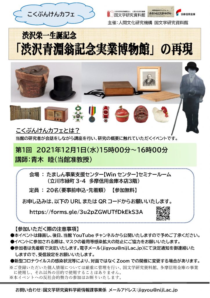 - ご登録いただいた個人情報については厳重に管理を行い、国文学研究資料館、多摩信用金庫の事業に使用し、それ以外の目的で使用することはありません。