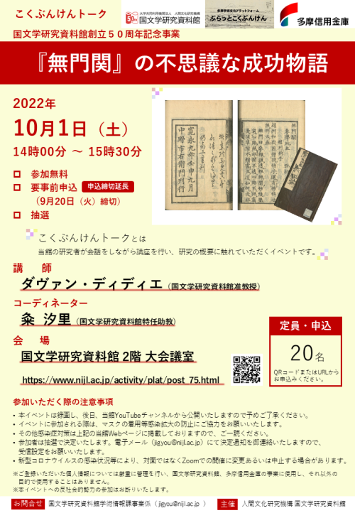 • 参加者は抽選で決定いたします。電子メール(jigyou@nijl.ac.jp)にて決定通知を御連絡いたしますので、受信設定をお願いいたします。