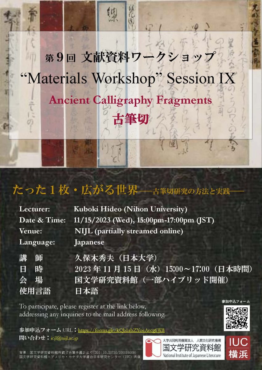 Each 2-hour workshop focuses on a different category of document (scrolls, manuscripts, emaki, hanpon, etc.), to be discussed by a field expert in its research use, according to the following schedule: