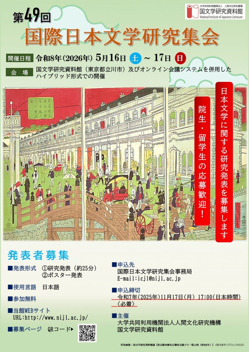 The 49th International Conference of Japanese Literature is now accepting applications for research presentation and poster presentation.