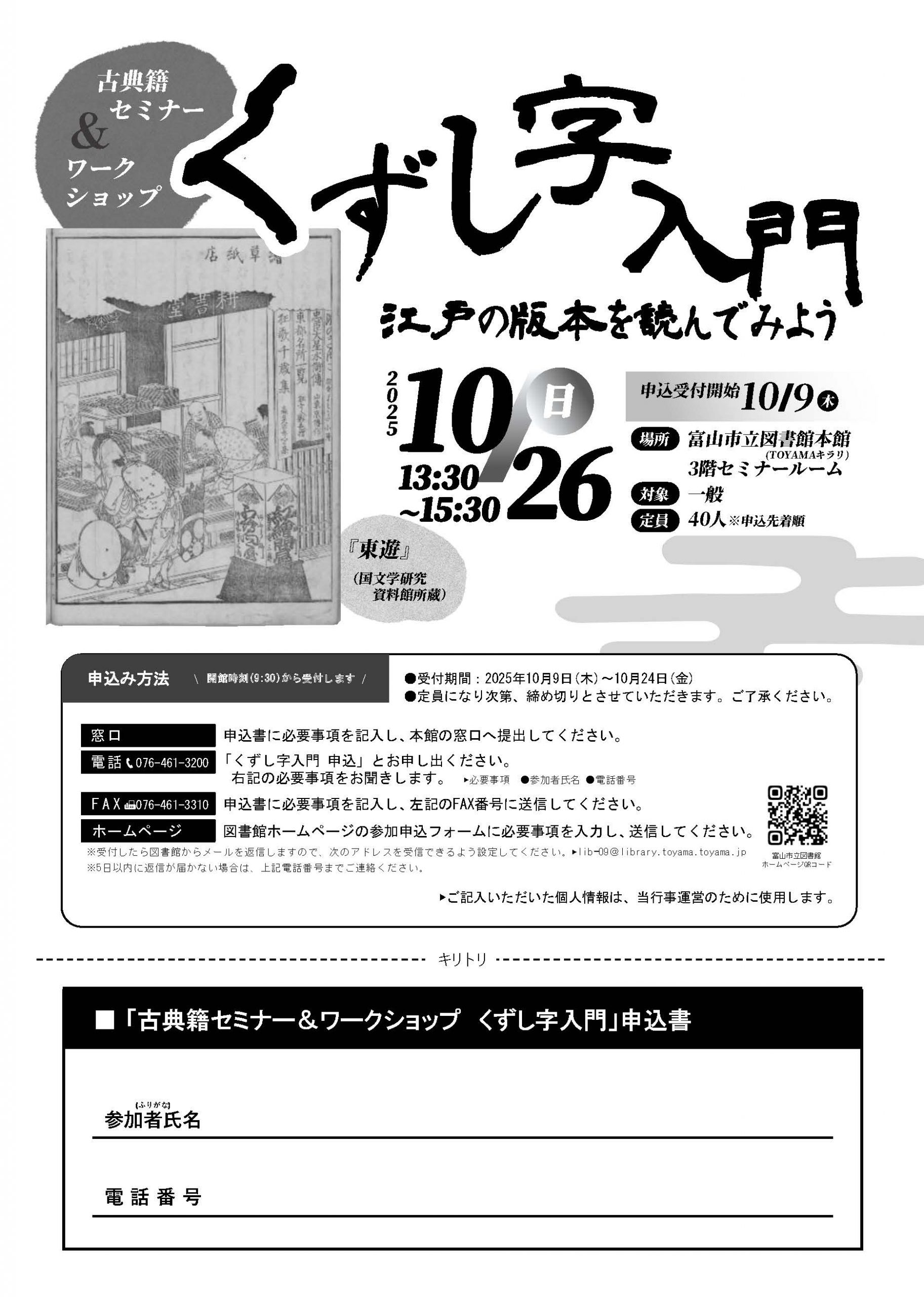 古典籍セミナー&ワークショップ「くずし字入門-江戸の版本を読んでみよう‐」