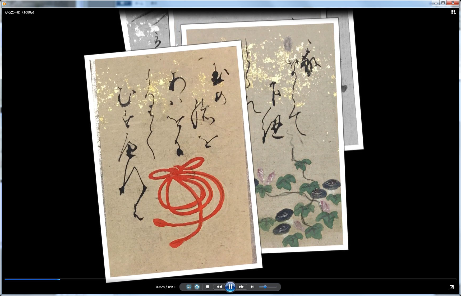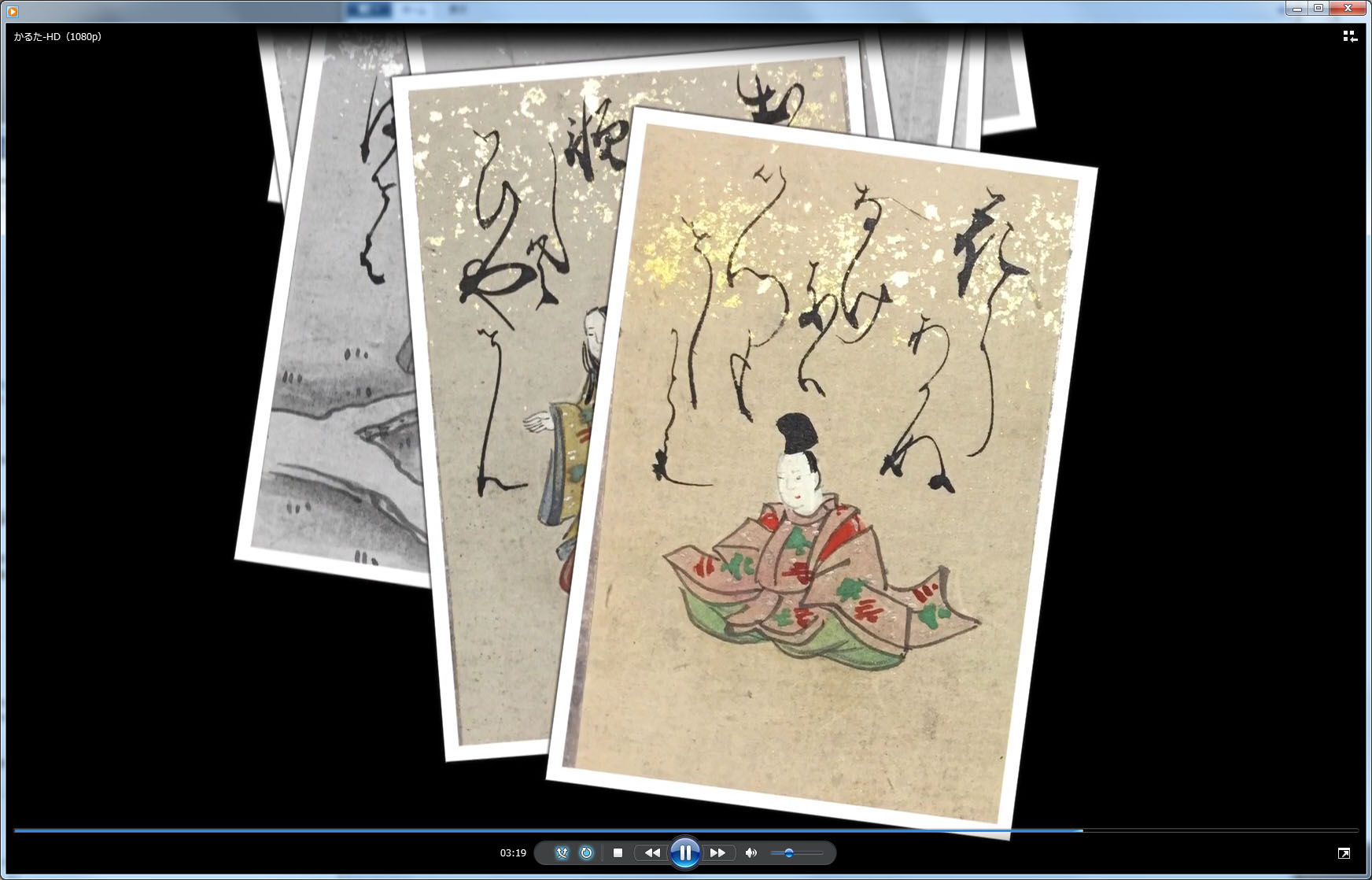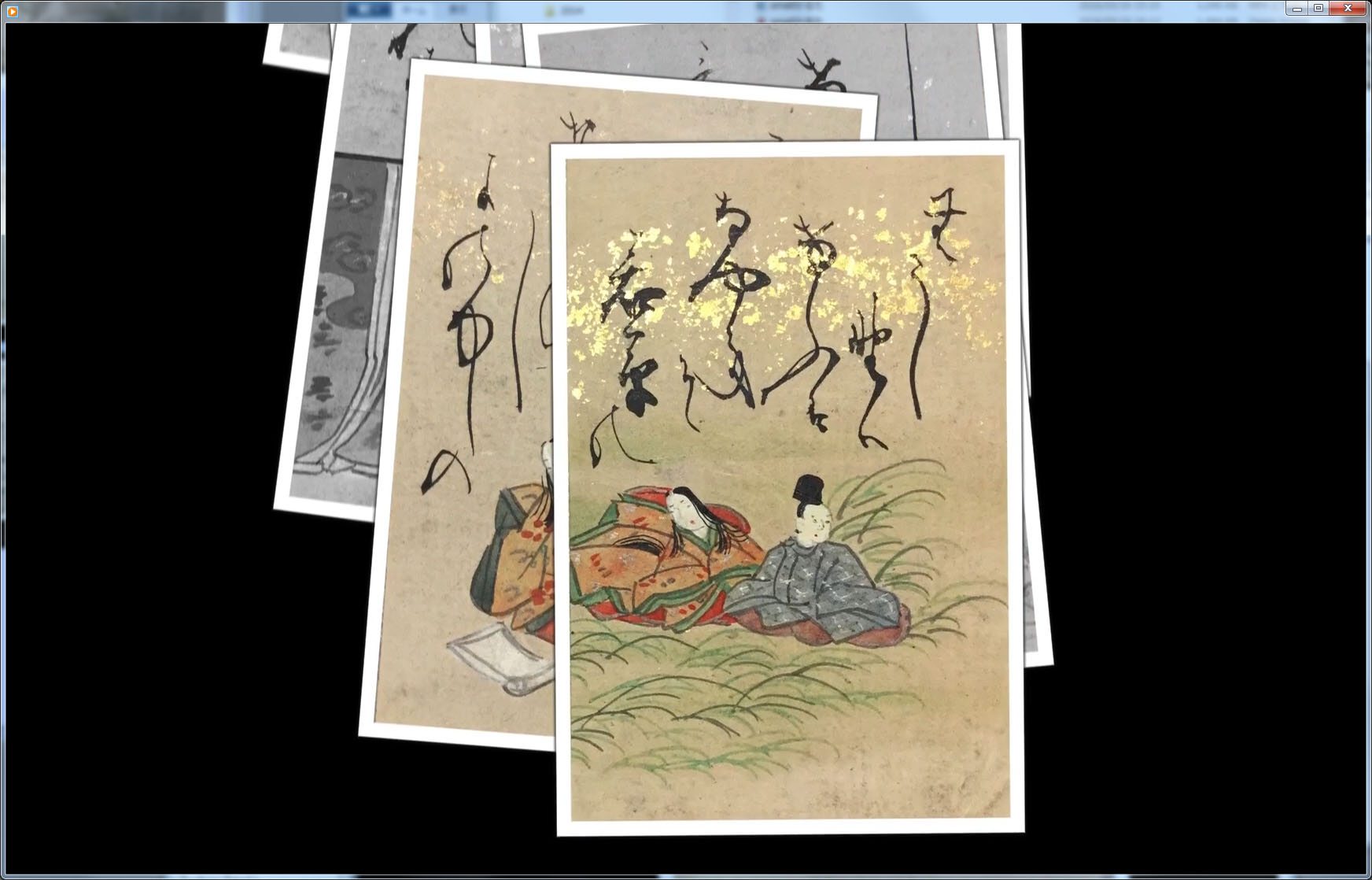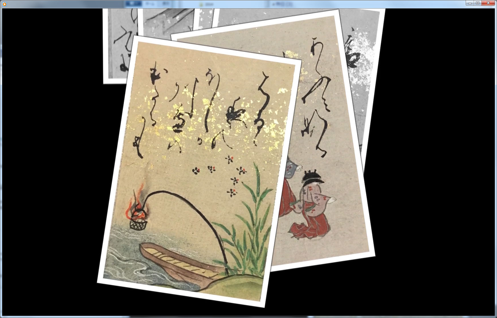 特設コーナの正面の壁に『かるた』を切っていくイメージで絵札をご覧になれます。