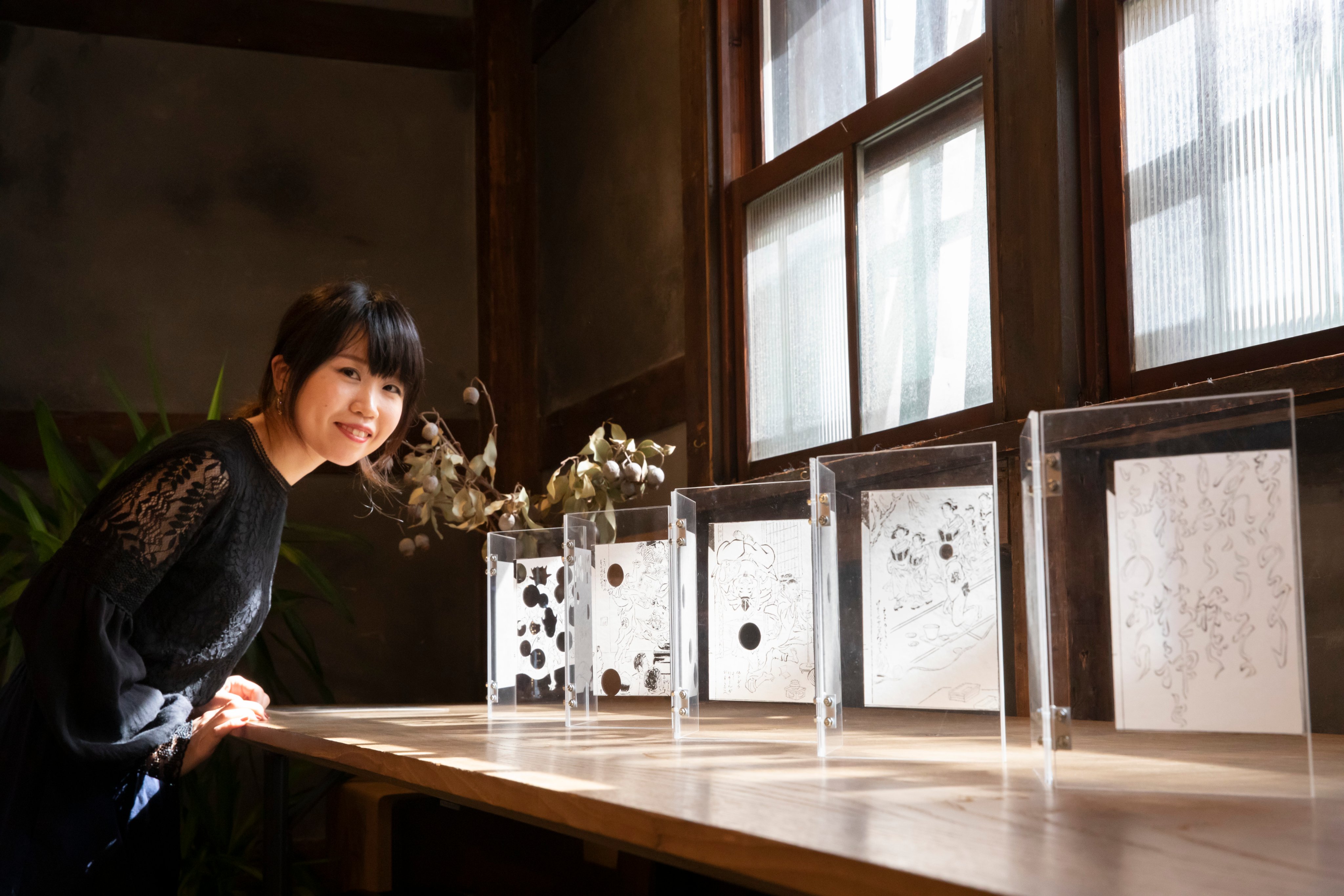 黄表紙を模写し、製本した経験から制作した「作者の手の内夢の内」は、黄表紙の流行のスピード感や楽屋落ちの楽しみを、現代のSNSの文脈に重ねた作品。